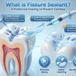 Fissure Sealant A fissure sealant is a thin plastic or glass ionomer coating placed on the chewing surfaces of premolars and molars...