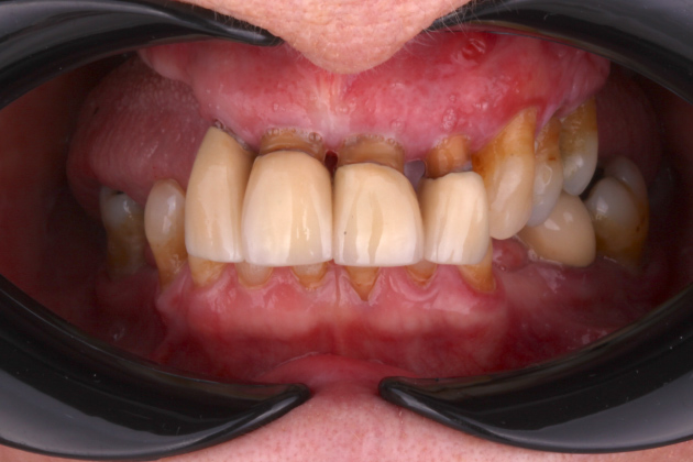 De slecht geconditioneerde tanden in de bovenkaak werden geëxtraheerd, waarna 4 gekantelde implantaten werden geplaatst met behulp van de All On 4 implantaattechniek. Na de implantaatintegratie werden er vaste-permanente porseleinen kronen geplaatst.