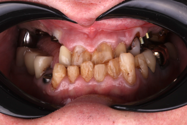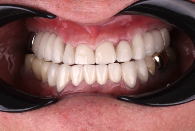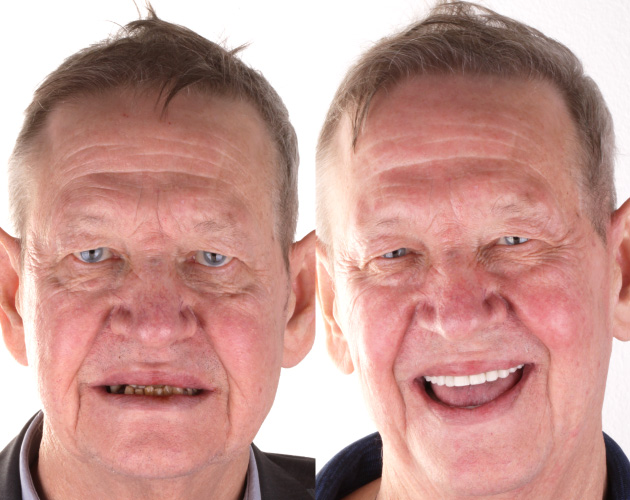 Eerst werden de geïnfecteerde tanden behandeld met een wortelkanaalbehandeling. Daarna werden de tandheelkundige implantaten geplaatst om de functie en het uiterlijk te herstellen op de plaats waar de tanden ontbraken. Op de implantaten en op zijn eigen tanden werden vervolgens zirkoniumkronen geplaatst. Dit behandelplan corrigeerde zowel de scheefstand als de ontbrekende tanden. Zowel het uiterlijk als de functie van zijn tanden werden hersteld.