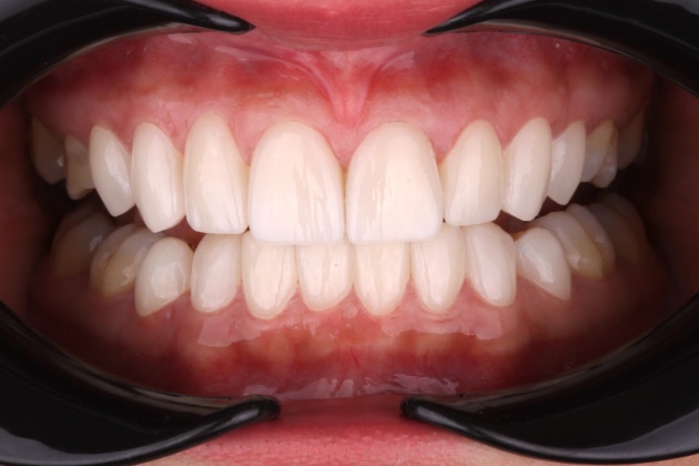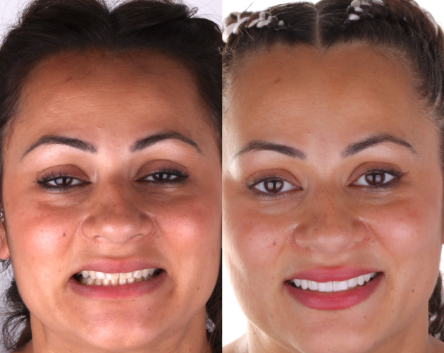 E-max facings, die bestaan uit zuiver en compact geperst porselein, zijn zowel op de boven- als onderkaak geplaatst. Er is voor deze methode gekozen om zoveel mogelijk van haar natuurlijke tanden te behouden en toch een significant esthetisch uiterlijk te bereiken.