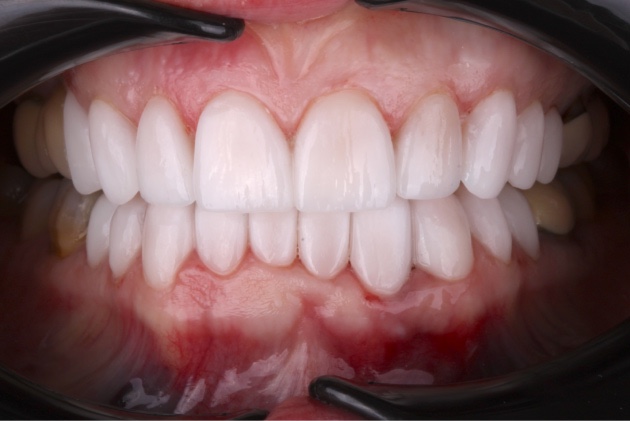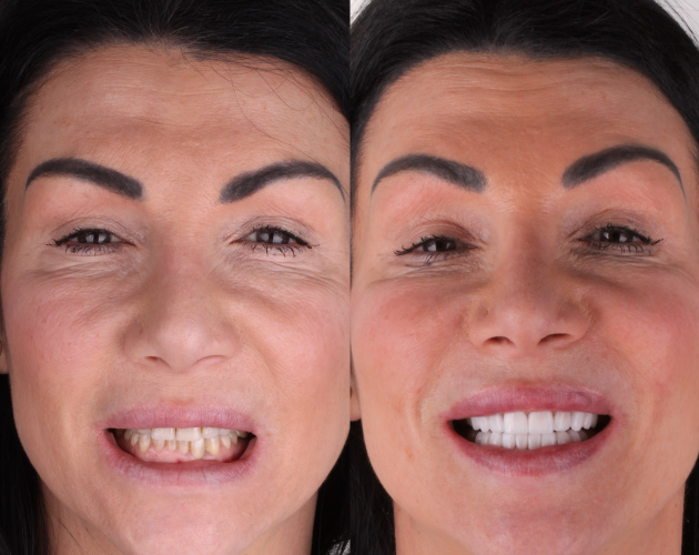 Om haar problemen aan te pakken, werden e-max facings geplaatst in zowel haar boven- als onderkaak. Deze behandeling corrigeerde haar beetproblemen en maakte haar tanden en lachlijn zichtbaar. De kronen zorgden ook voor een uniform, esthetisch uiterlijk en losten het probleem van verkleuring op.