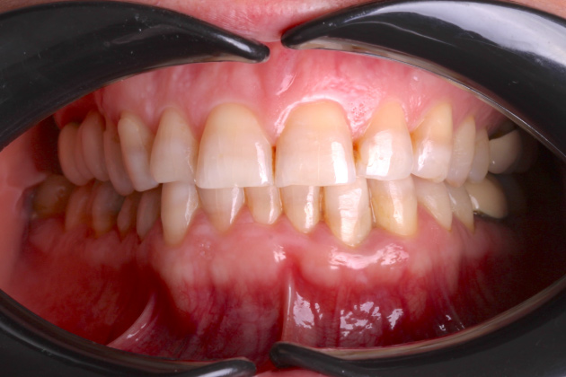 Onze patiënte klaagde over een occlusieprobleem, wat betekende dat haar tanden en lachlijn niet zichtbaar waren. Ze maakte zich ook zorgen over de verkleuring van haar tanden, die haar esthetische uiterlijk en zelfvertrouwen aantastte.