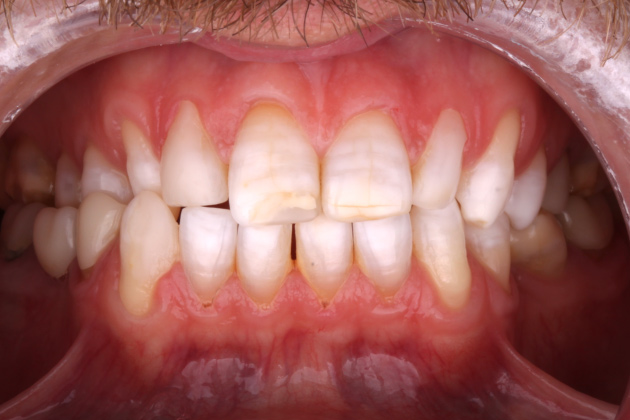 Onze patiënt uitte zijn bezorgdheid over het feit dat zijn tanden niet goed uitgelijnd waren, wat gevolgen had voor zijn beet en algehele gebitsgezondheid. Bovendien wees hij erop dat zijn tanden verkleurd waren, wat de esthetiek van zijn glimlach beïnvloedde.